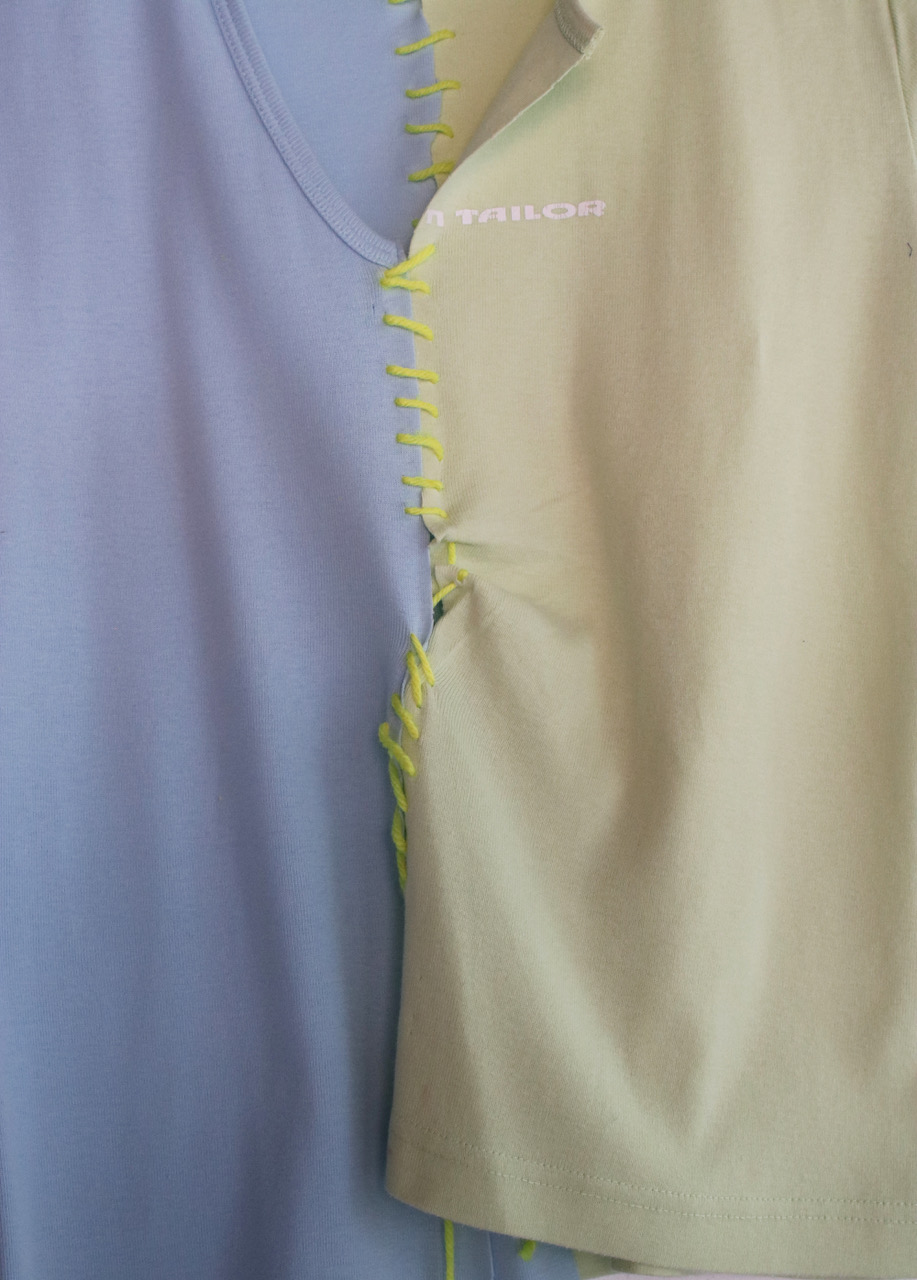 Eine perforierte Plane, welche ursprünglich der Werbung eines Modehauses diente und das Gesicht eines makellosen Models zeigt, wird auf dem vorpräparierten Rasen verankert. Im Laufe der Zeit spriesst das Gras durch die Einschnitte der Plane und beginnt, das Gesicht des Models in der Wahrnehmung des Betrachters zu verändern …