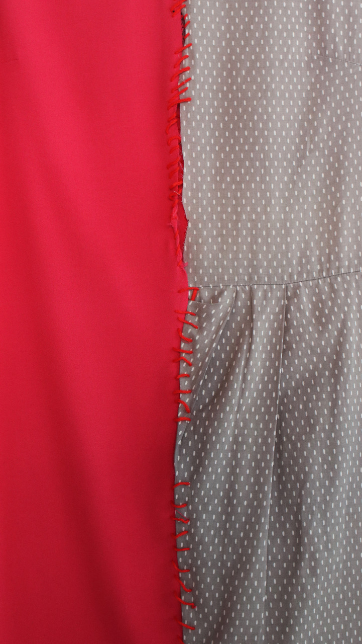 Im satten Grün des Grases in sich ruhend, laden die roten Feuerwehr-schläuche gleichsam zum Platznehmen und Verweilen auf der Wiese ein und wecken auf den ersten Blick Erinnerungen an eine Idylle, wie wir sie aus Wanderungen und von Monets Bild „Le déjeuner sur l’herbe“ in uns tragen. Näher besehen, wird die Idylle weggedrängt: die Knoten weisen auf ungelöste Konflikte hin, die leeren Feuerwehrschläuche auf fehlende oder ungenutzte Möglichkeiten, Brandherde zu löschen. Die Installation steht sowohl als Ausdruck der aktuellen politischen Hilflosigkeit, kriegerische Auseinander-setzungen zu beenden, wie auch unserer alltäglichen Schwierigkeiten, Probleme unter einander zu lösen.
